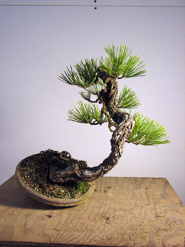 This small pine goes way back to when I was a potter, trying to sell them at my first convention in the mid 90’s in Harrisburg, PA. I met Andy Smith there, and we traded a pot for a tree. He collected the yamadori pine in South Dakota.