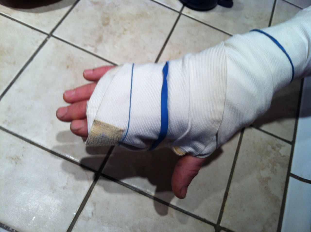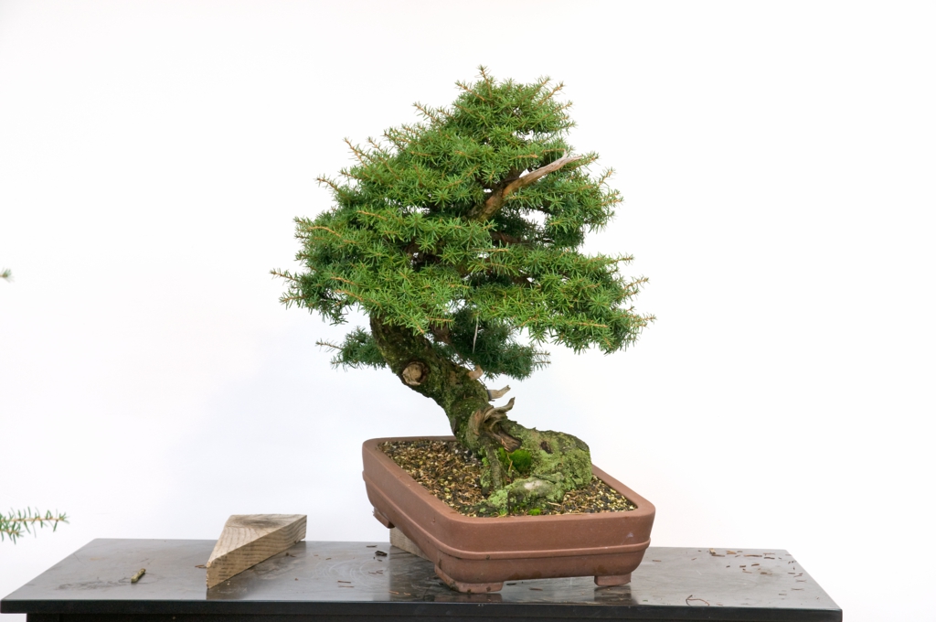 Something always seems to need fixing at the Seasonals. A few Seasonals back we had pair of glasses that needed fixing, and this time it was my hand. Thankfully it was expertly immobilized by Seasonal surgeons using completely inadequate tape and rubber bands. One does lose a bit of authority waving such a club around, although I have a tough time keeping a straight face around such silly students anyhow—2 Americans and 3 Canadians for gosh sakes. Thank you Ed, Howard, Ray, Bob, and stalwart Roger for once again braving the Seasonals, where you never really know what’s going to happen other than something’s probably going to break, and it might not have anything to do with bonsai.