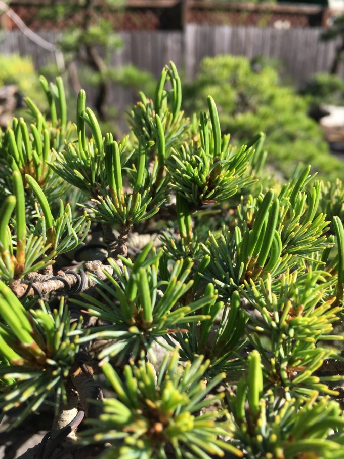 I keep my pines and juniper on a bench that has a clear plastic roof. They only get watered when I want them to. Here in the Piedmont of North Carolina we can go two weeks in the spring where it rains every day. Yesterday we had 5/8″ of rain. So far today, it’s 6PM here we have had 3 1/2″ and it is going to keep coming for the next three days. Covered benches is my only defense.
