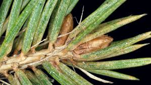 Spider mites on a fir, showing the yellow stippling on the needles