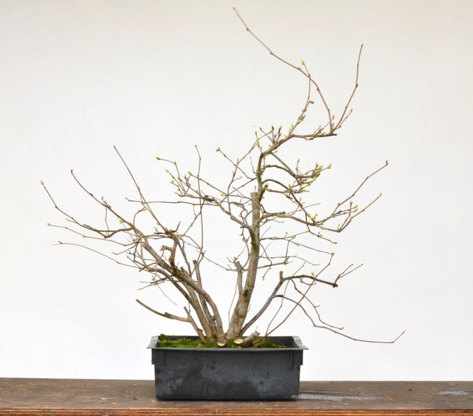 One of the enticing challenges of deciduous bonsai is seeing the future tree in the young twigs in front of you. The process is so long that unless you can push aside the years and see the final product in one’s imagination, there will be a moment ten years down the road when one will think, ‘Darn, if I’d only moved those branches over there way back when.’