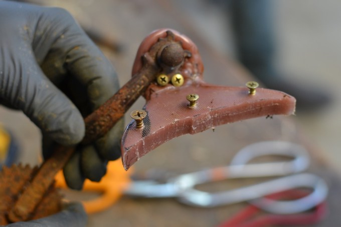 The riding spur attached to our plant support, a piece of nylon cutting board…