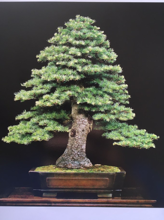 Jim Gremel’s initial branch setting of the Atlas Cedar, Cedrus atlantica. Usually we find Atlas Cedar’s blue varieties in the horticulture trade. This however is the normal form, with greener foliage. This tree was purchased at a club auction and then planted in the ground for more than a decade. Note the smooth trunk. This photo was likely from around 1990. Which gives us roughly 30 years of developmental progression in the following images: