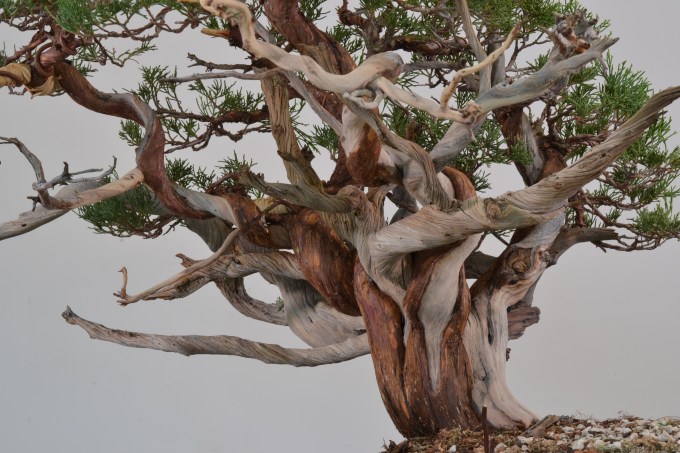 Often we style a juniper as an abstract form. Many species are, after all, shrubs, and have no clear form. And then, deadwood features often go off into sculpural wonderlands quite unrelated to trees, other than being made of wood.