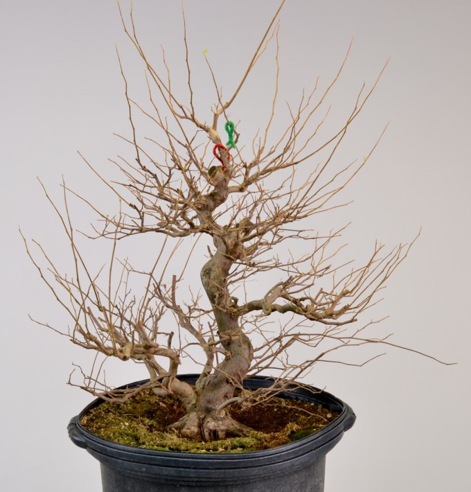This Styrax is still a pre-bonsai. A tree ‘on the way to find out’. Nibbling away at it as one might on a mature bonsai will keep pre-bonsai development to a standstill.
