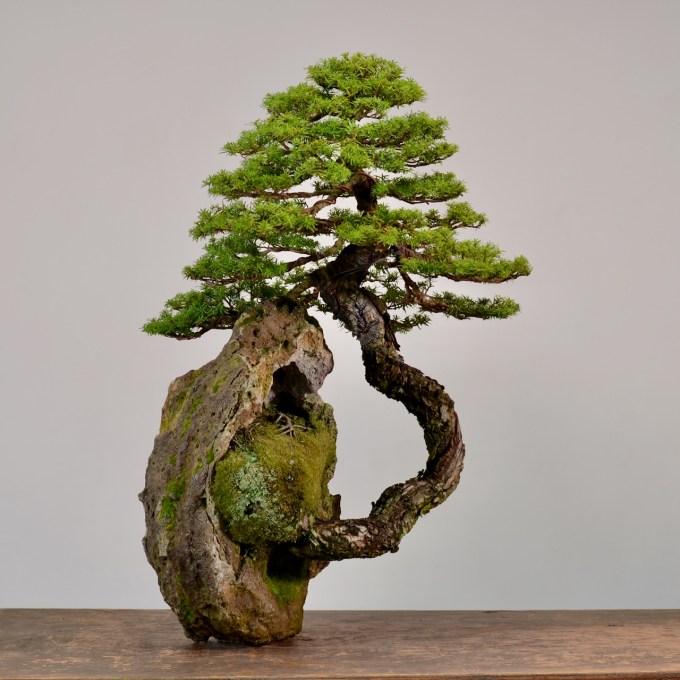 For a composition showing a tree clinging to life on the side of a windy mountain the foliage looks too youthful….apex is too pointy. I don’t see any windswept jin/dead branches that have succumbed to the elements.