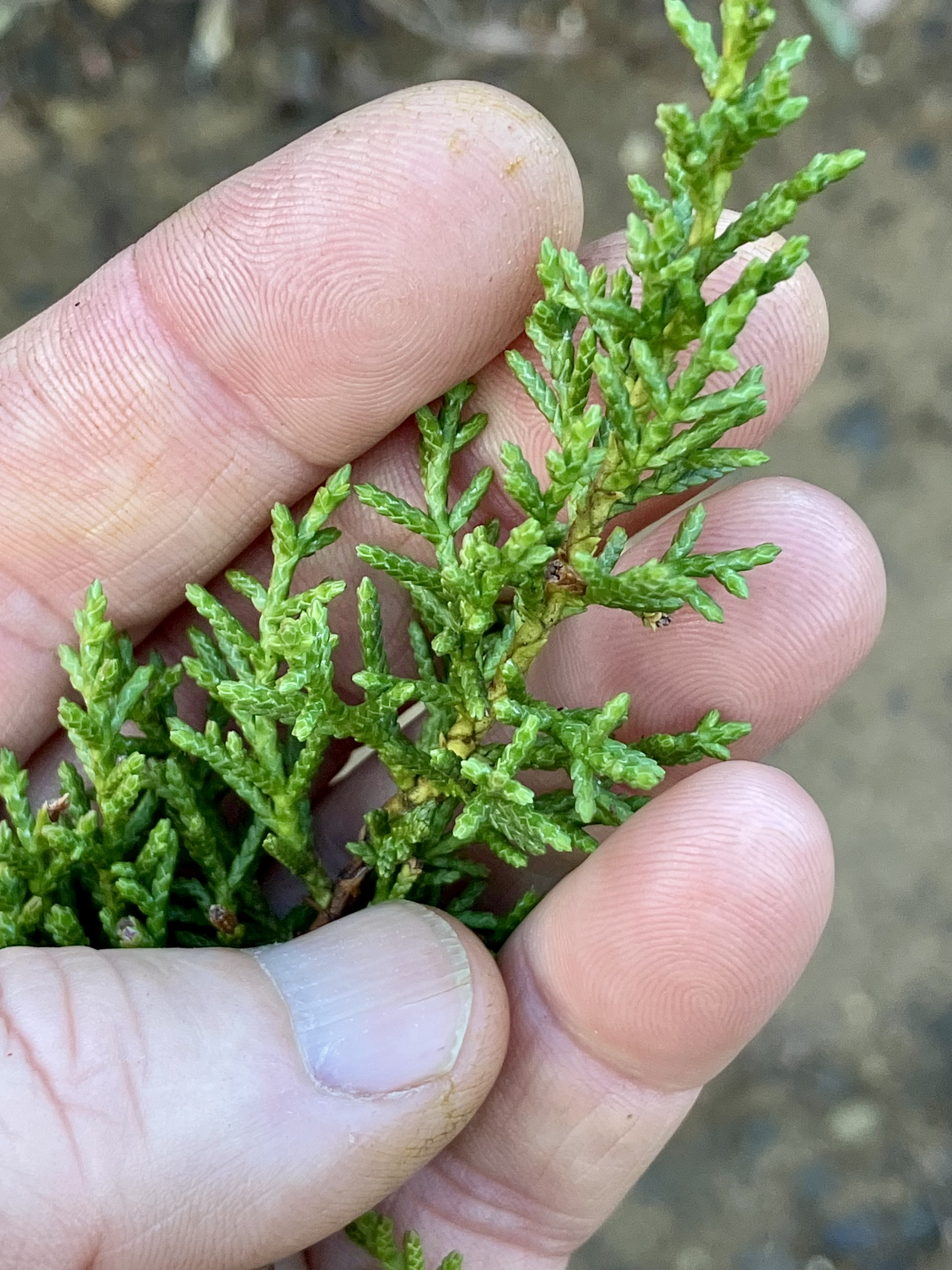 OK, plant quiz time… Looks maybe like Hinoki or similar, yes? Well, not even close: Pherosphaera hookeriana.