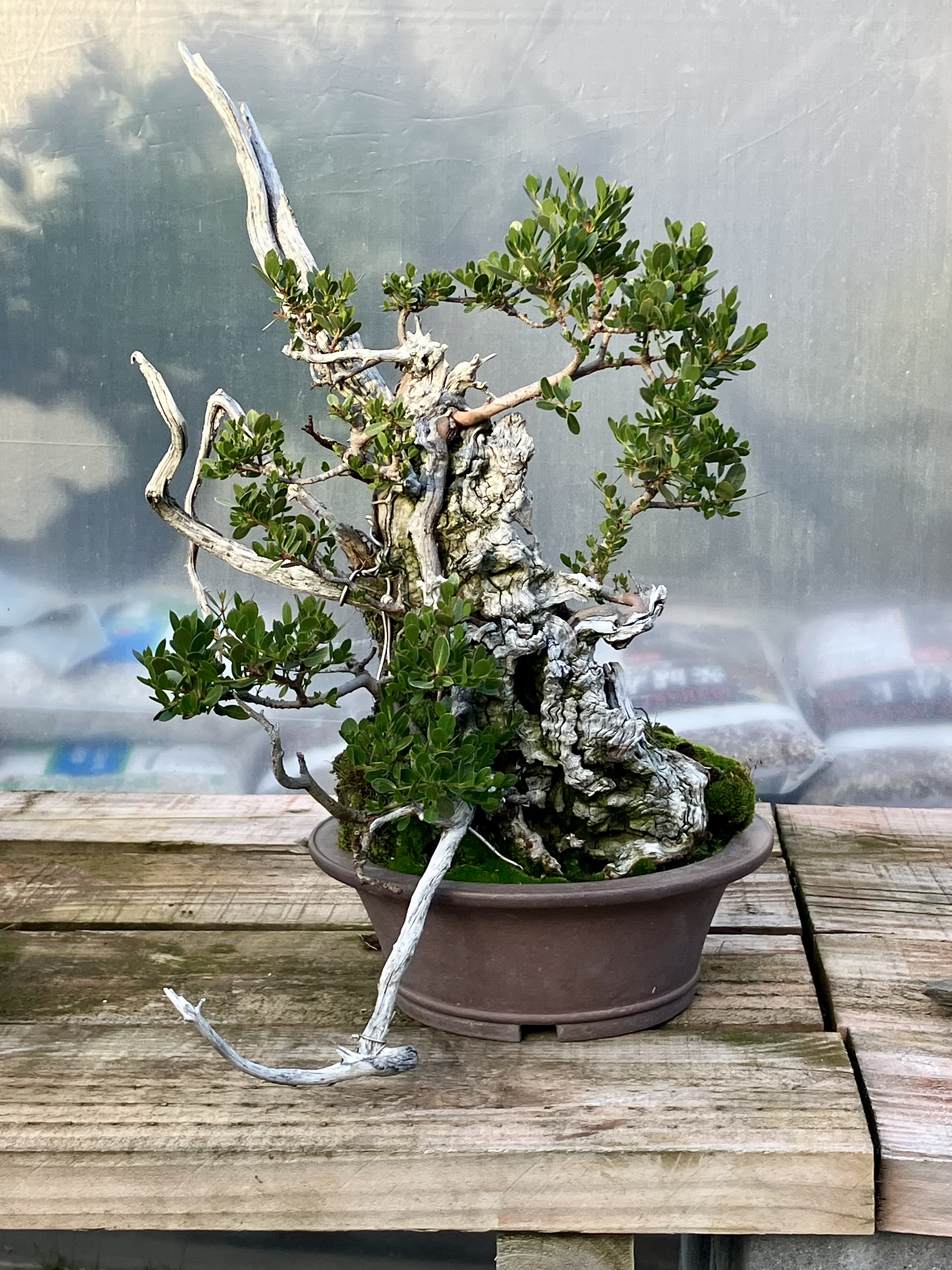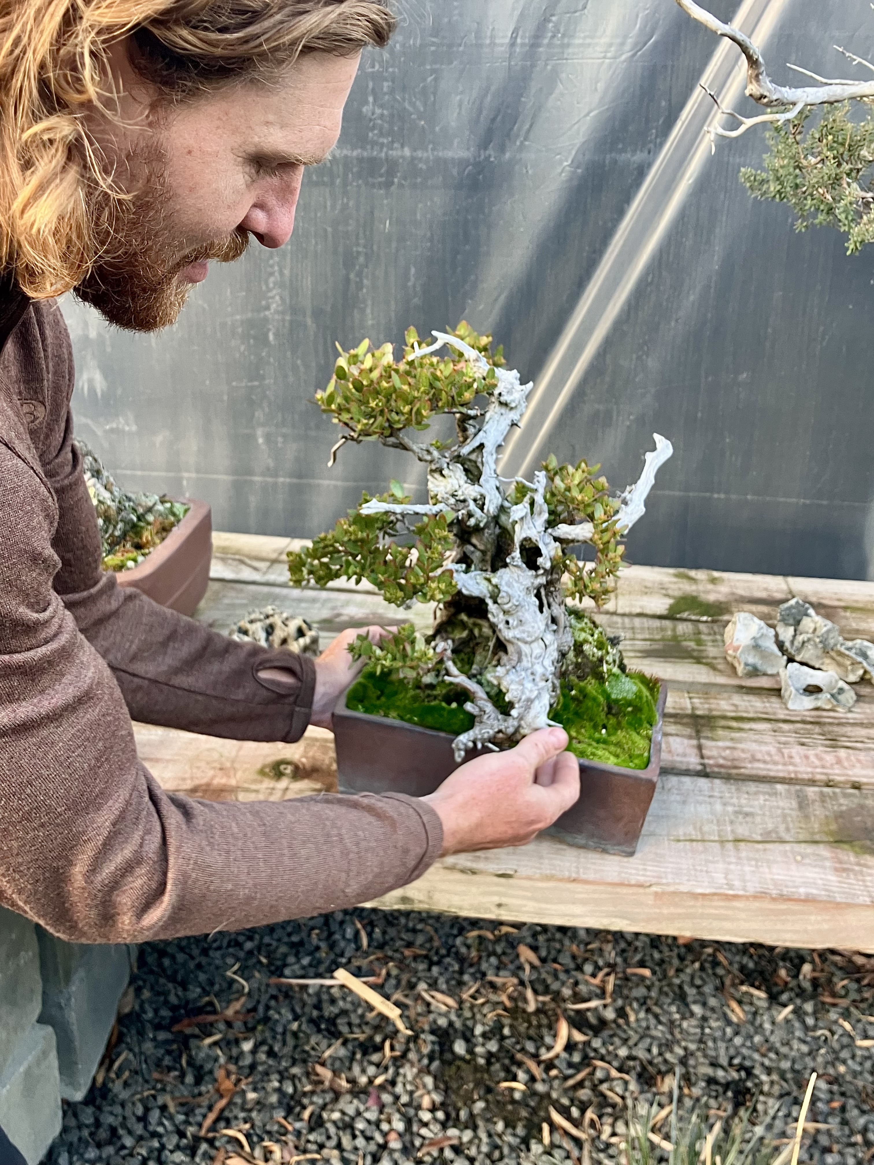 Jarryd shared a few bonsai “on the way to find out”, those almost ready for styling. Eucalyptus vernicosa, Varnished Gum. Delicious deadwood here.