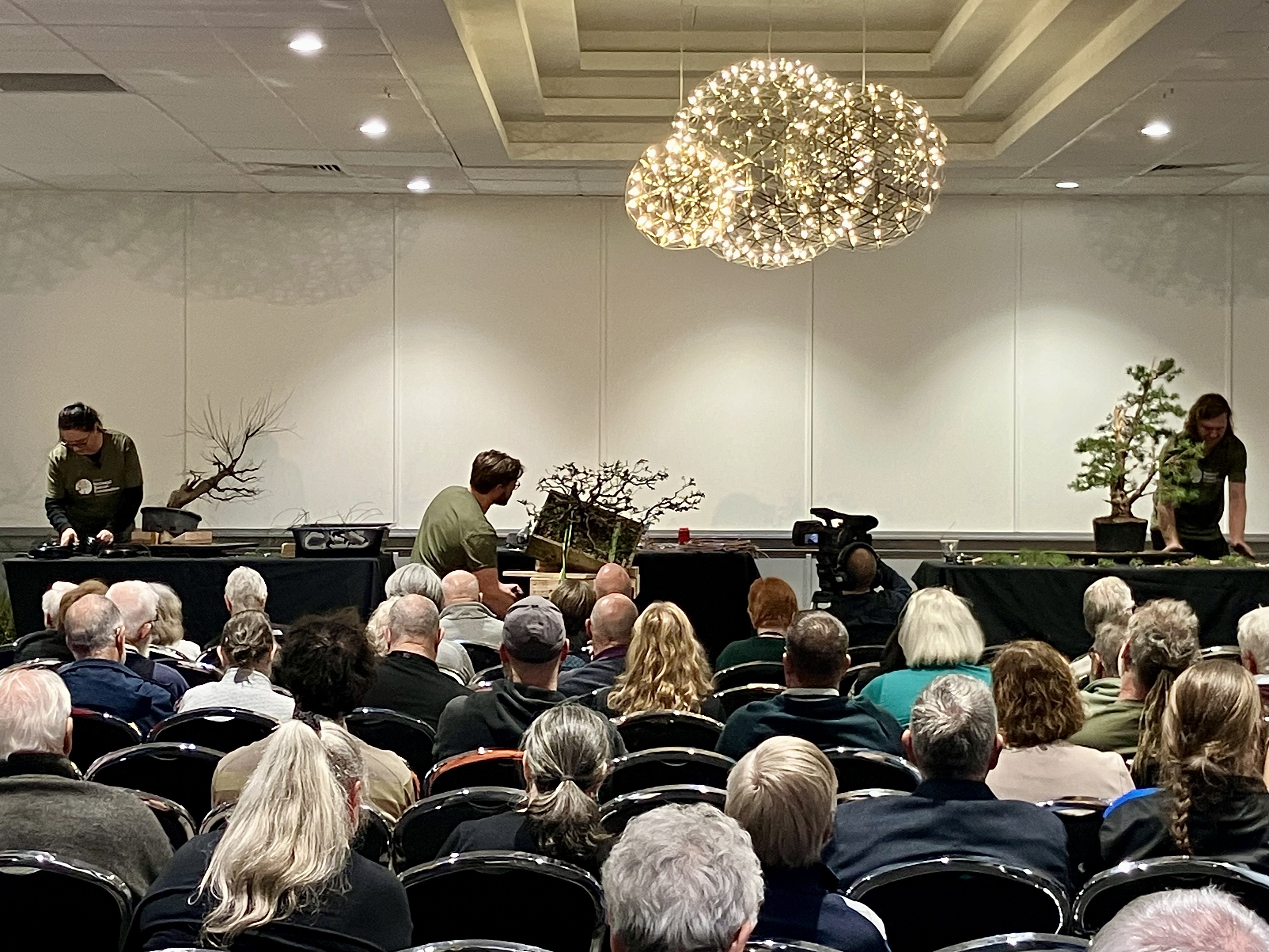 Three young stars of Australian bonsai: from left, Marcela Ferreira, Sam Thompson, and Jarryd Bailey. Jennifer Price joined me as out-of-country guests. A wonderful and impeccably organized convention!