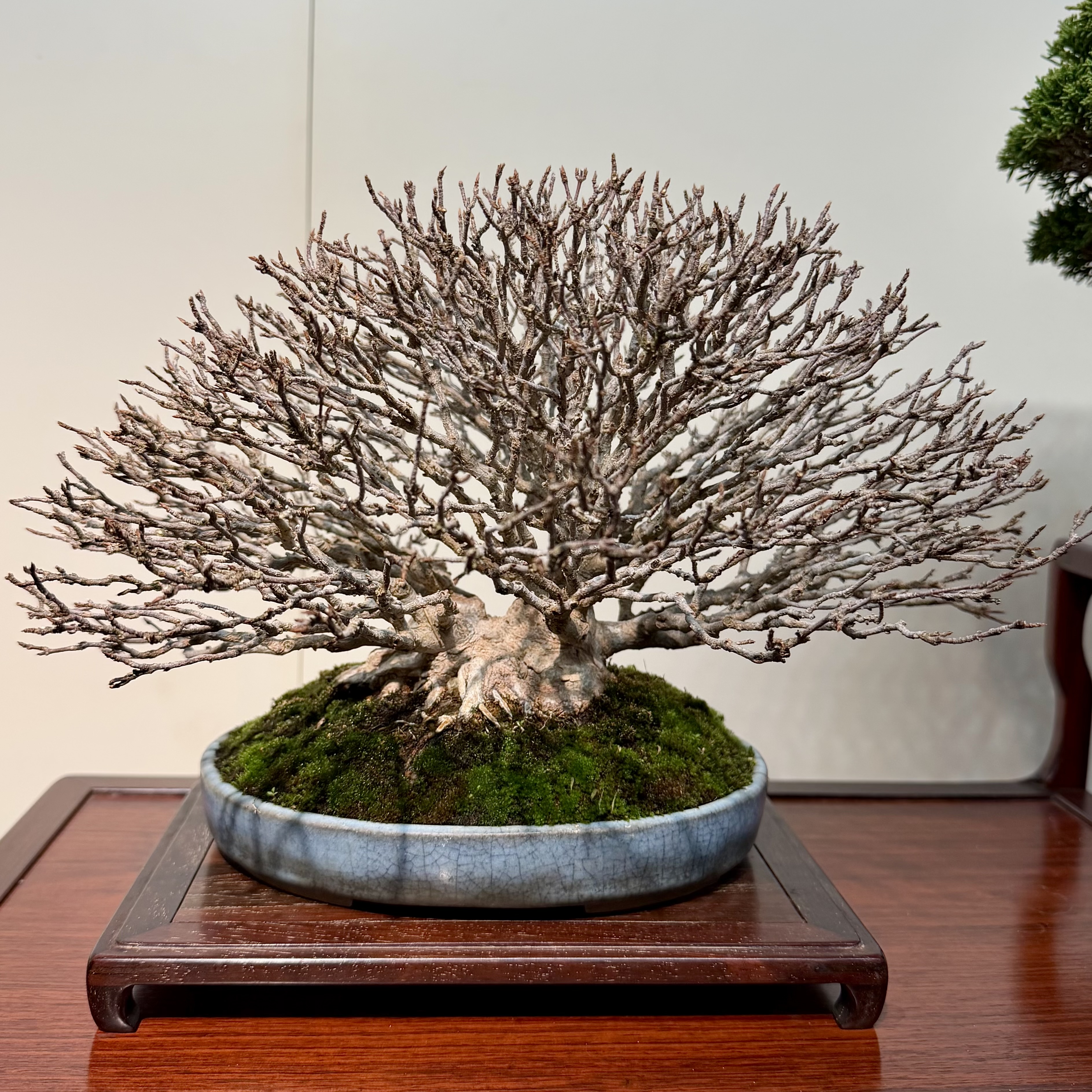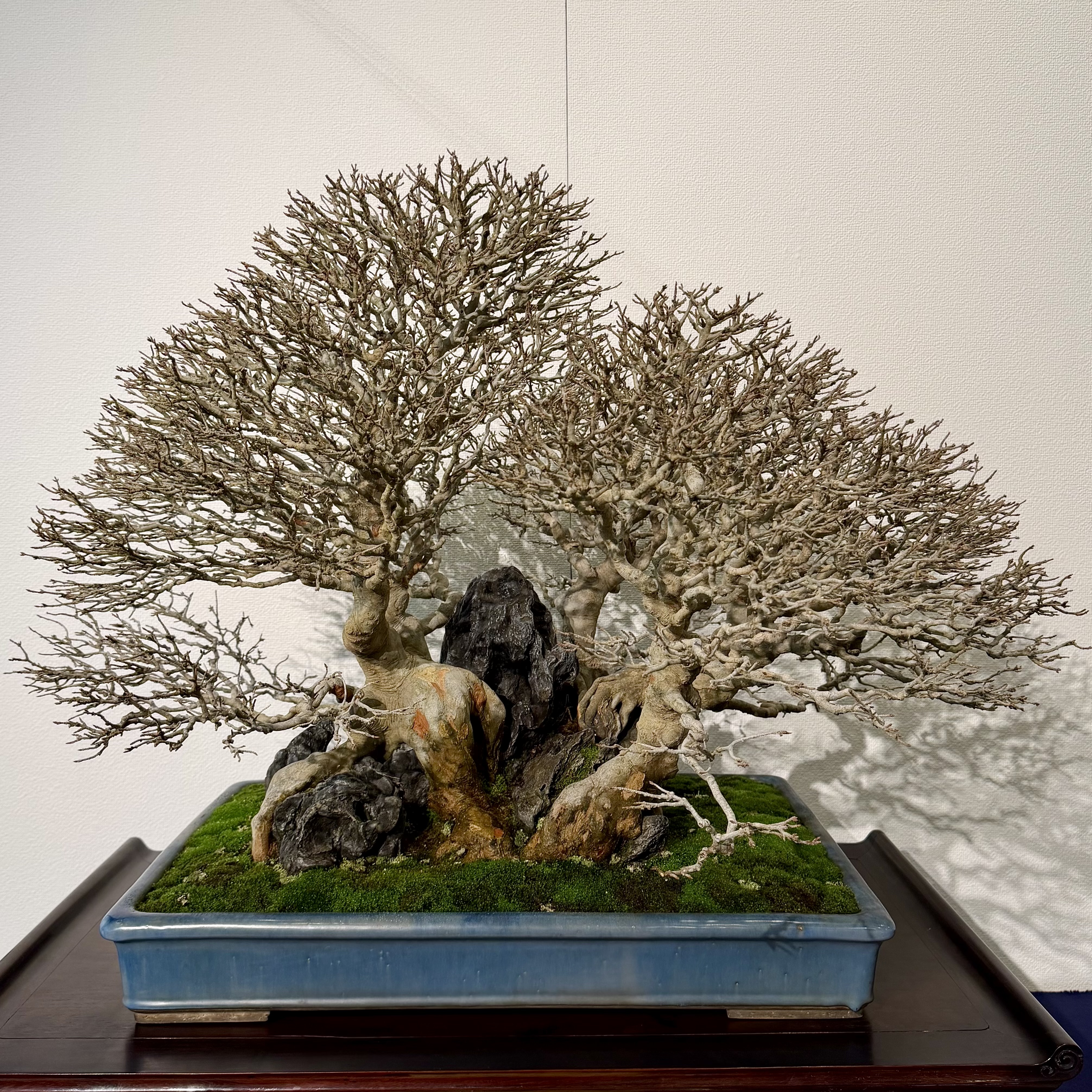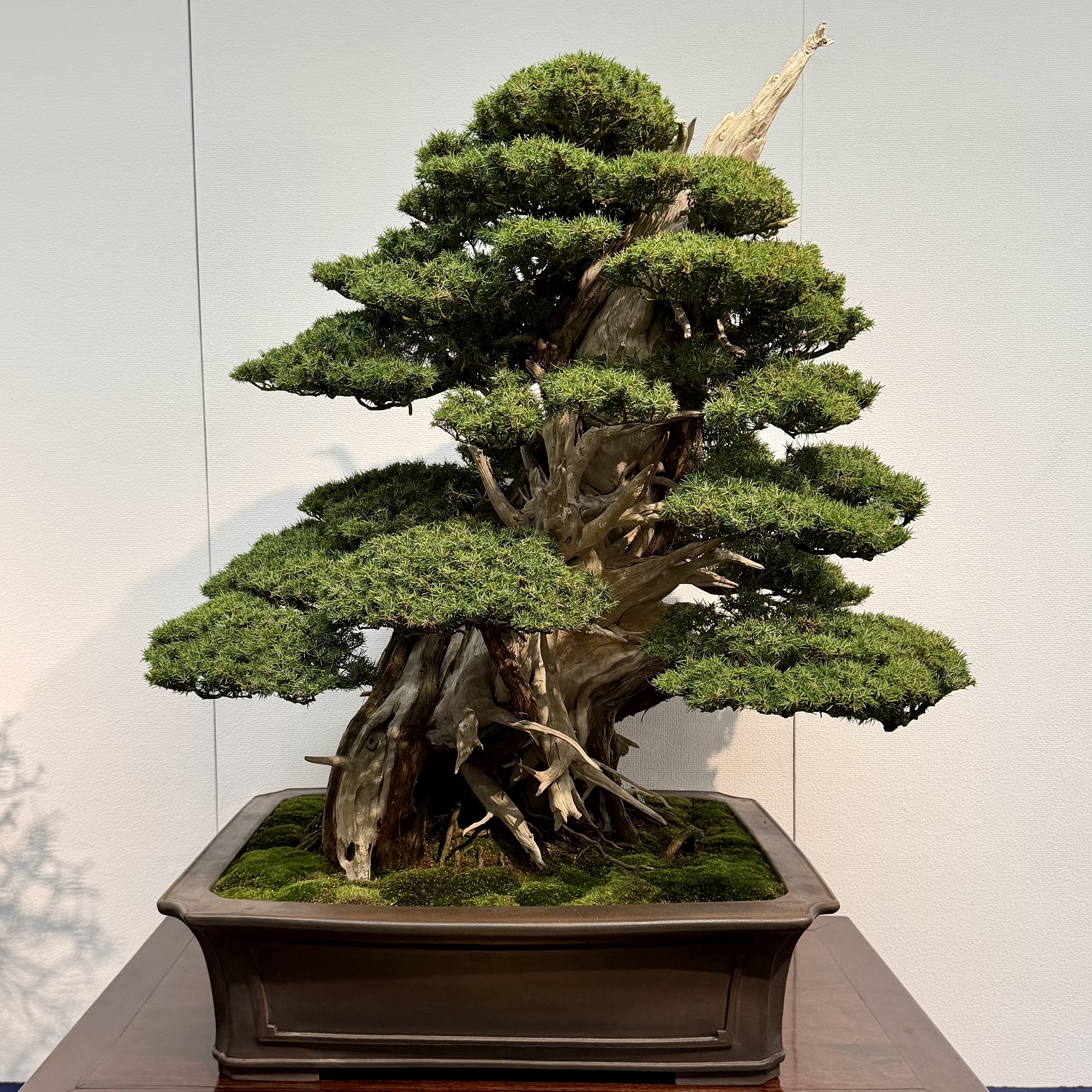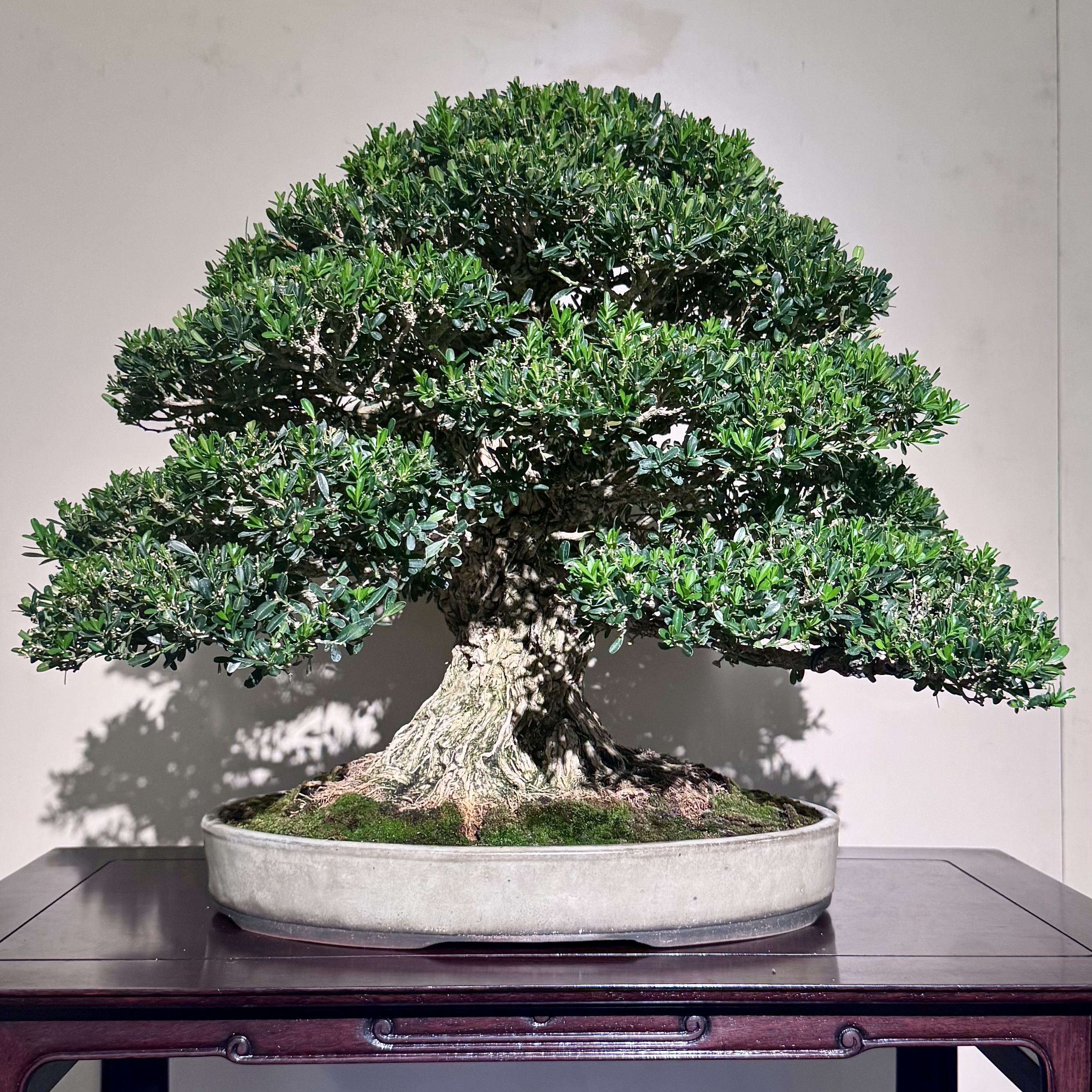 A Harland Boxwood. Unusual in the Kokufu. Excellent nebari. You’d struggle to get a fine and detailed nebari like this in the ground, likely pot-grown from a cutting or air-layer.