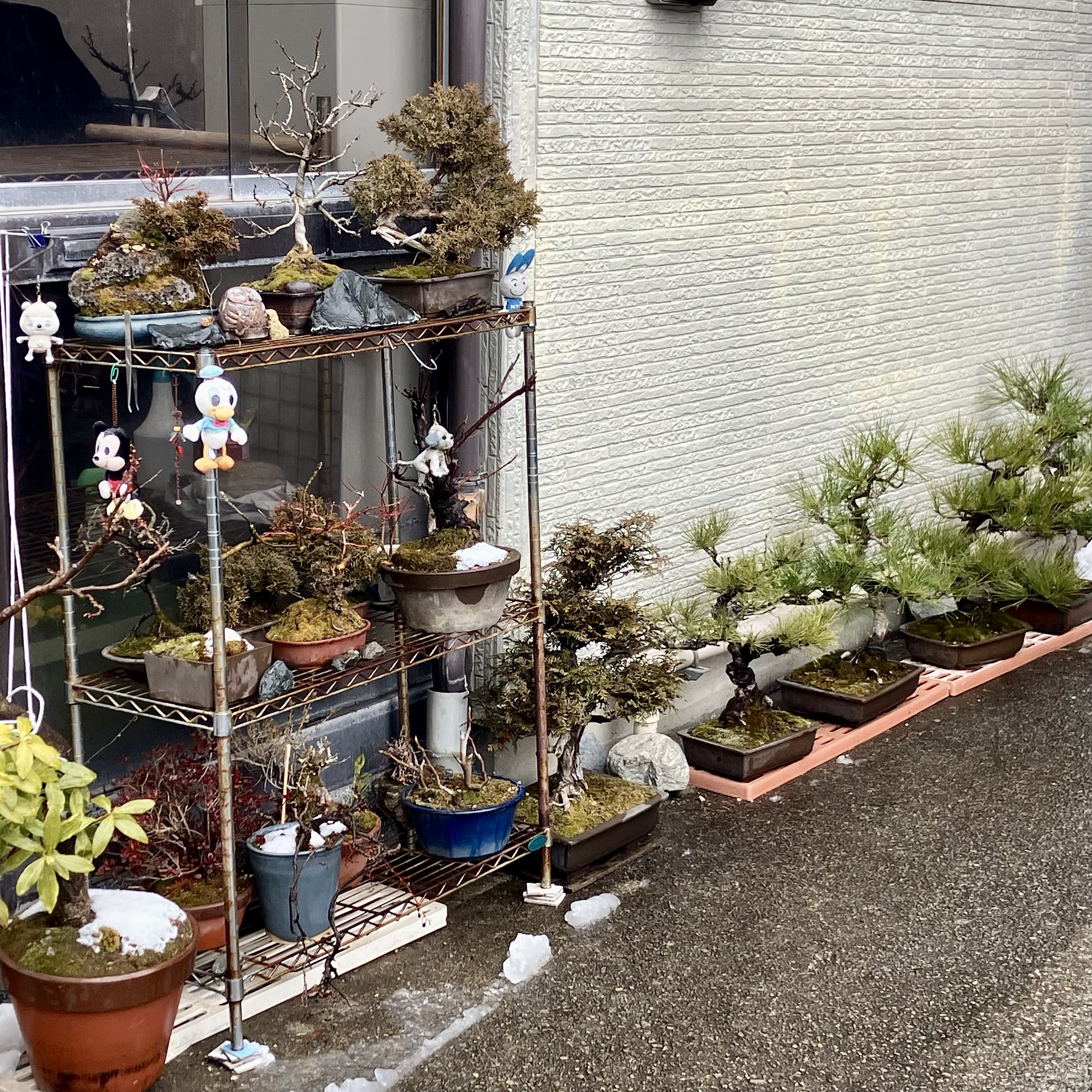 To the side of a house in Nagano we saw a common sight anywhere in Japan: bonsai. Dangling Disney characters optional.