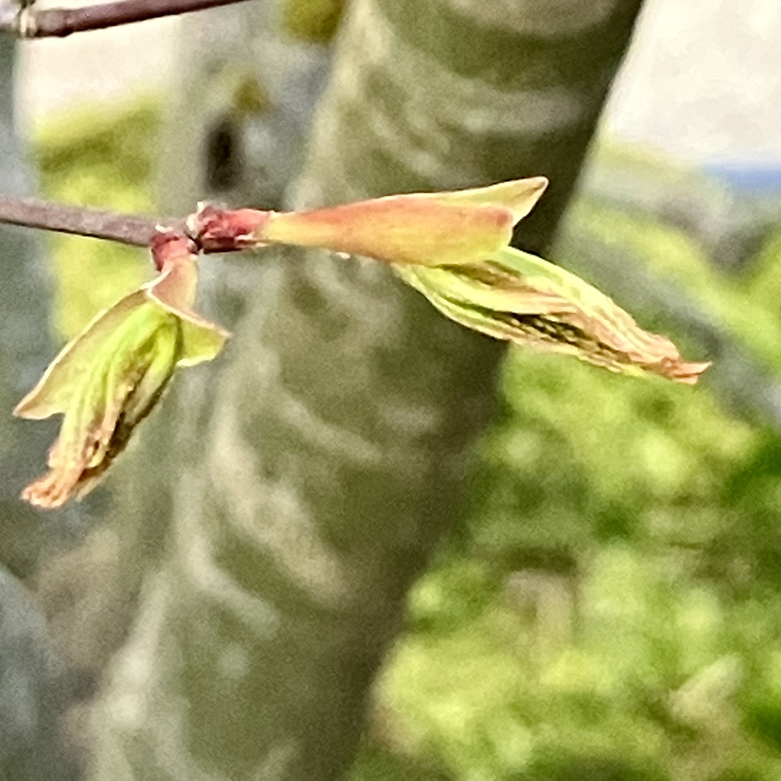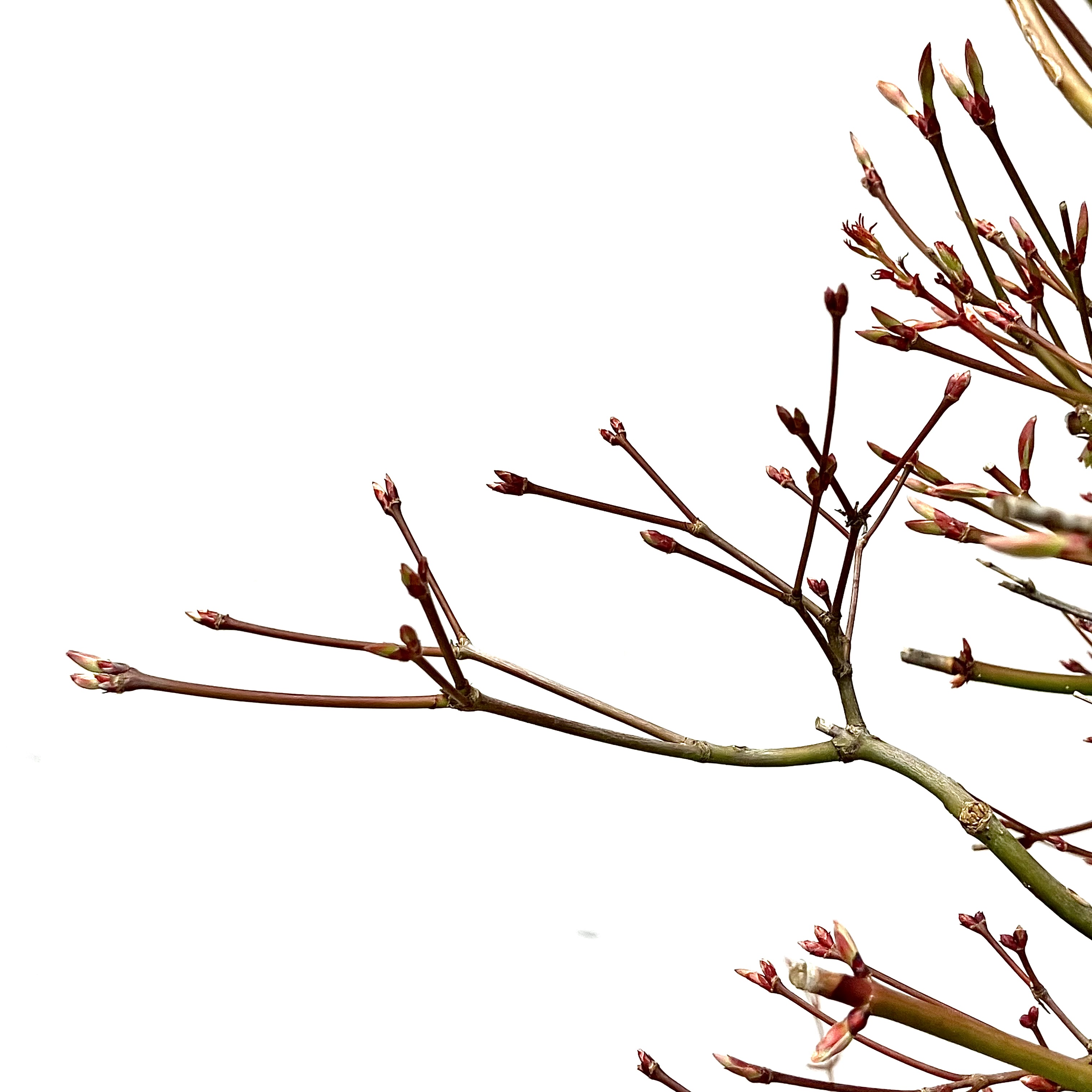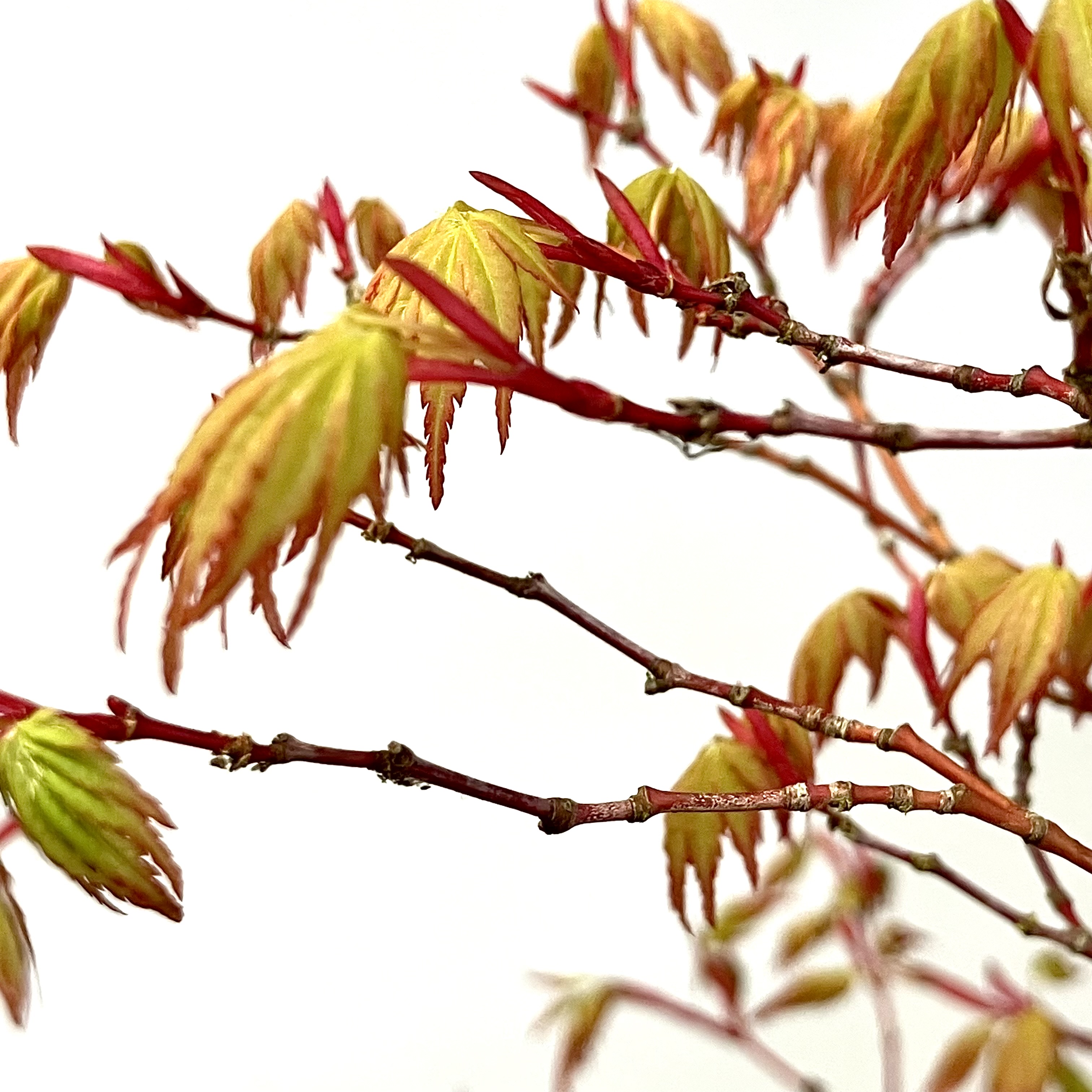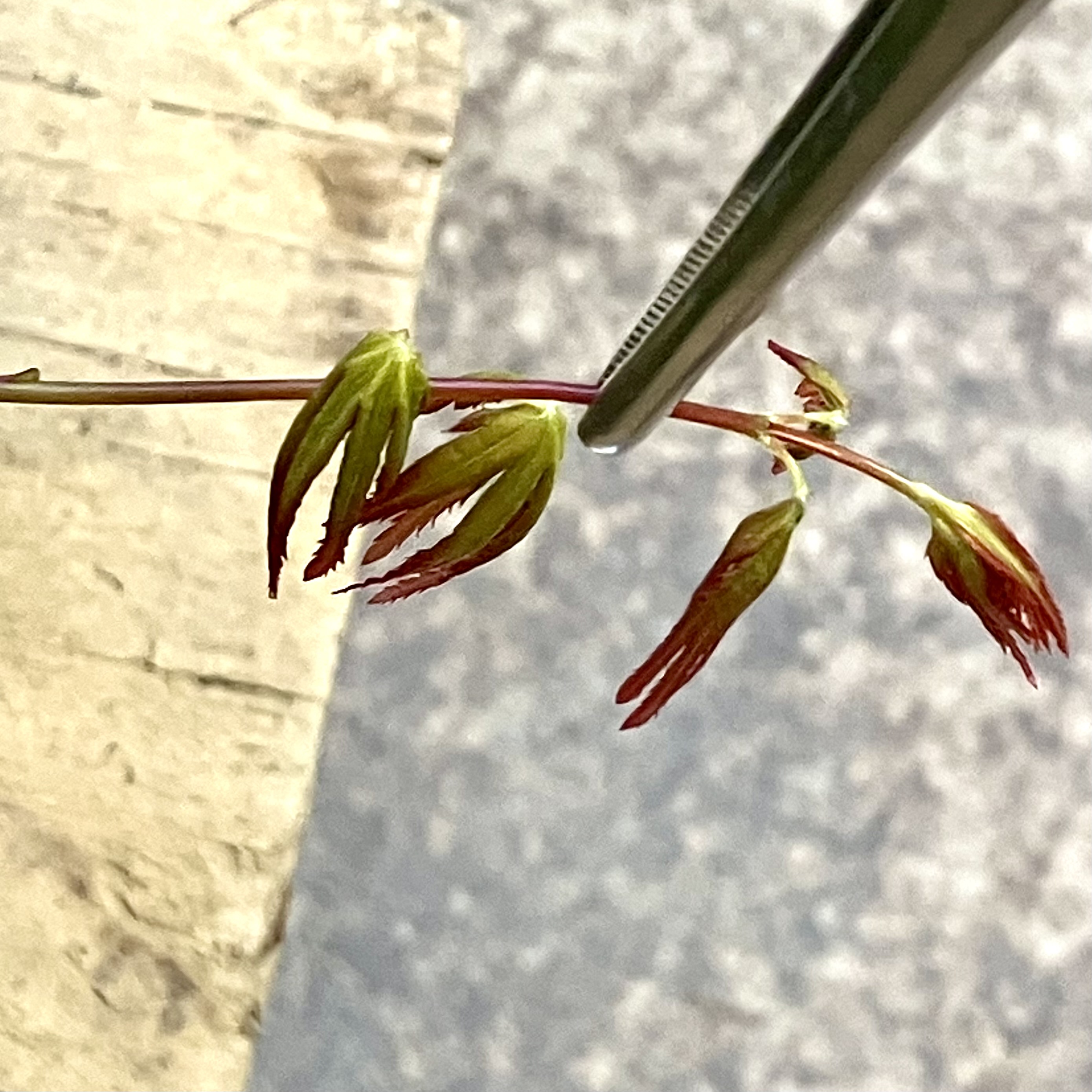 A Japanese Maple shoot about a day away from opening its first leaves.